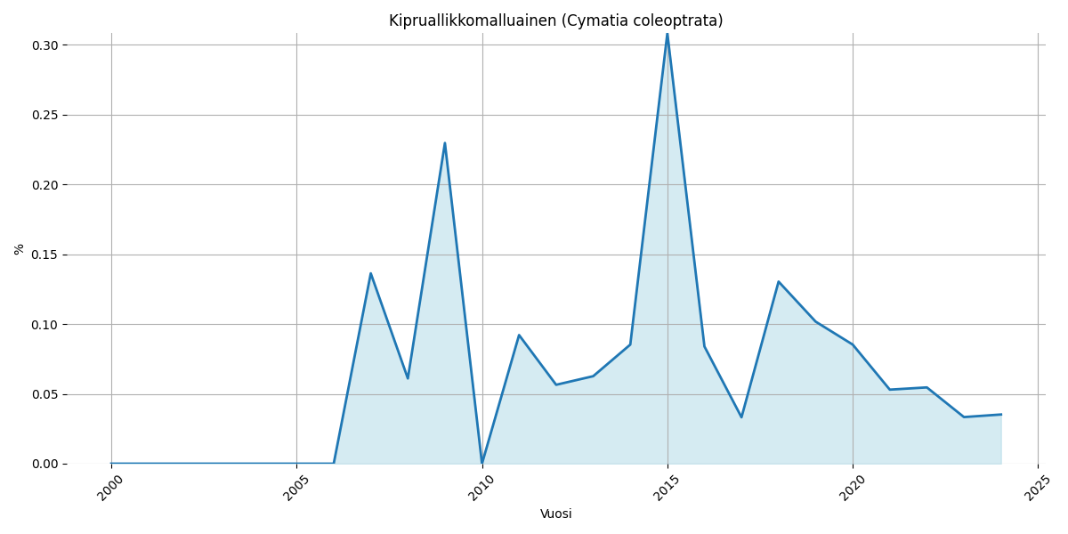 0011 | Kipruallikkomalluainen | Cymatia coleoptrata | 0.003 | 0.346 | 0.002 | 3.099 |  |