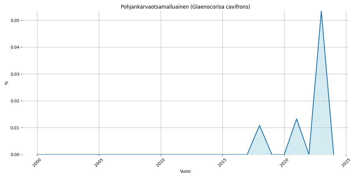 0014 | Pohjankarvaotsamalluainen | Glaenocorisa cavifrons | 0.001 | 0.296 | 0.0 | 9.225 |  |