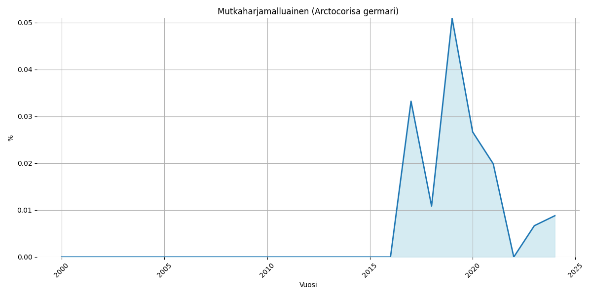 0016 | Mutkaharjamalluainen | Arctocorisa germari | 0.001 | 0.942 | 0.0 | 5.06 |  |