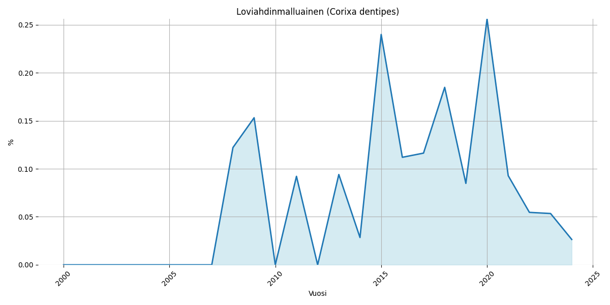 0020 | Loviahdinmalluainen | Corixa dentipes | 0.005 | 0.744 | 0.003 | 2.783 |  |