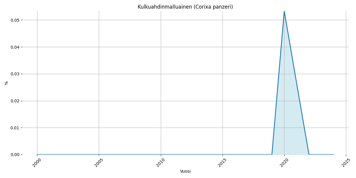 0021 | Kulkuahdinmalluainen | Corixa panzeri | 0.001 | 0.106 | 0.0 | 9.837 |  |