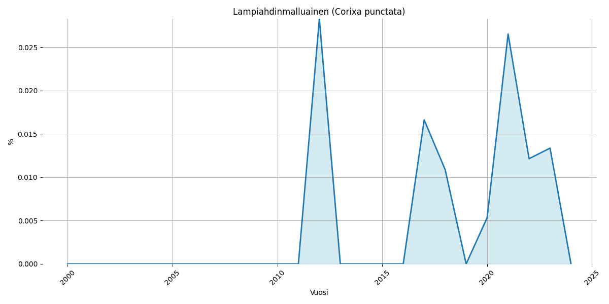 0022 | Lampiahdinmalluainen | Corixa punctata | 0.001 | 0.681 | 0.0 | 4.721 |  |
