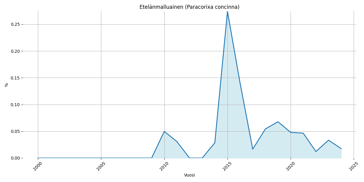 0026 | Etelänmalluainen | Paracorixa concinna | 0.003 | 1.095 | 0.001 | 4.847 |  |