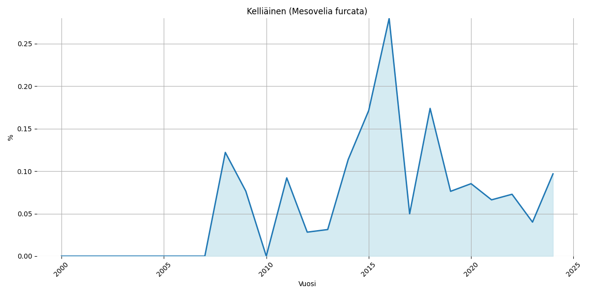 0045 | Kelliäinen | Mesovelia furcata | 0.005 | 1.219 | 0.004 | 2.689 |  |