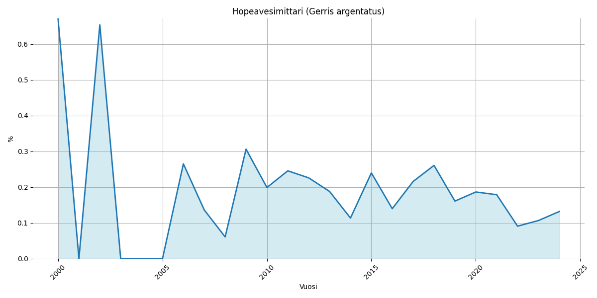 0055 | Hopeavesimittari | Gerris argentatus | -0.005 | -0.012 | -0.001 | 2.419 |  |