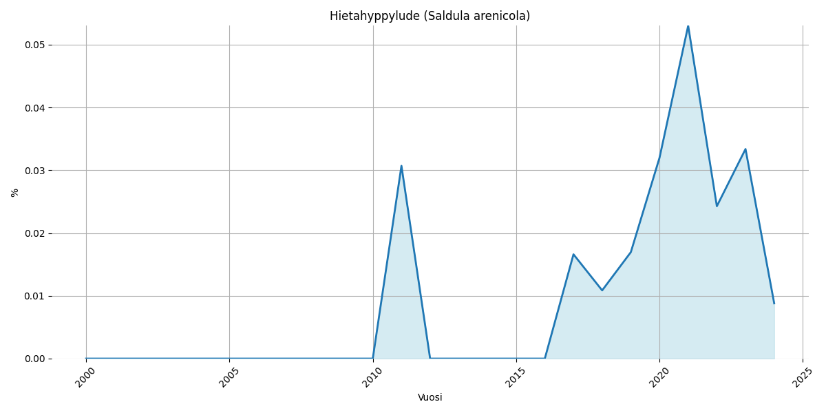 0069 | Hietahyppylude | Saldula arenicola | 0.001 | 1.72 | 0.0 | 3.496 |  |