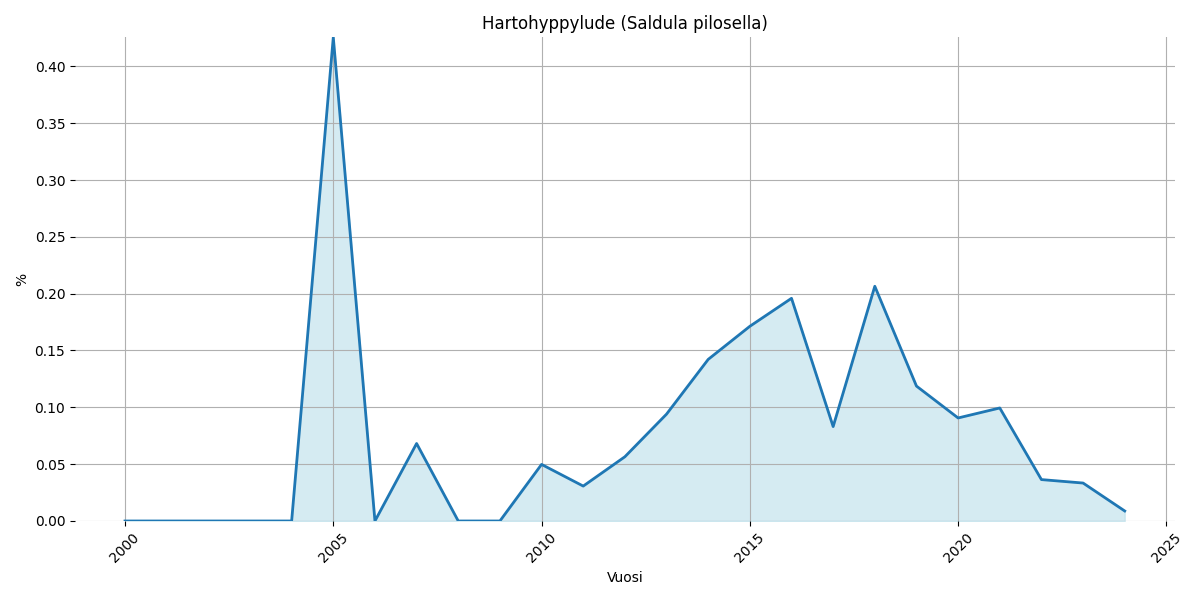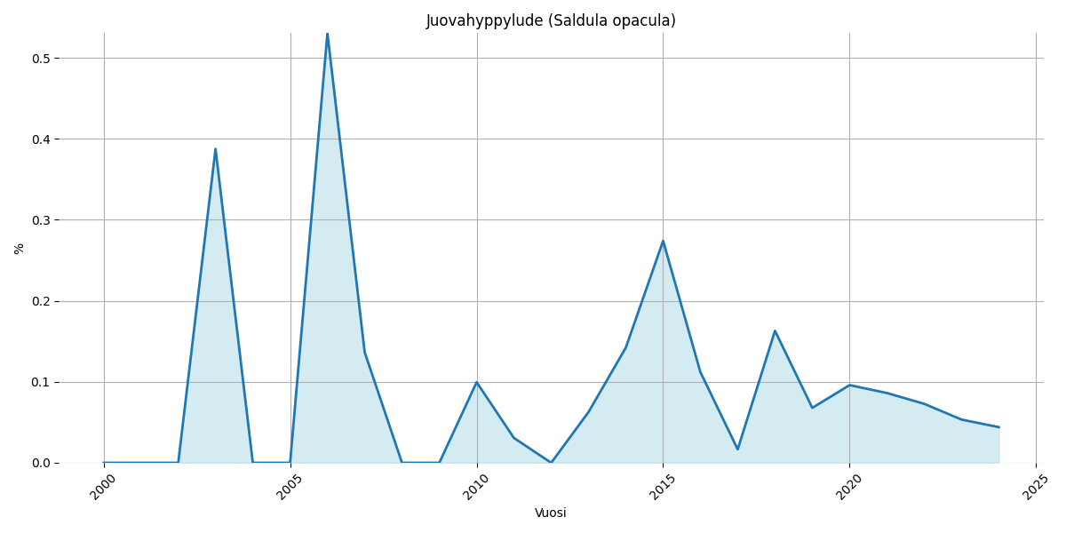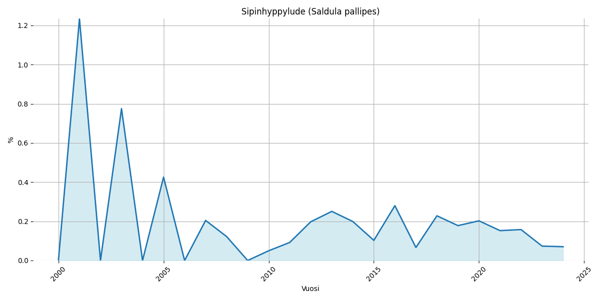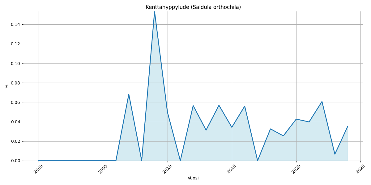 0072 | Kenttähyppylude | Saldula orthochila | 0.001 | 0.414 | 0.001 | 3.205 |  |