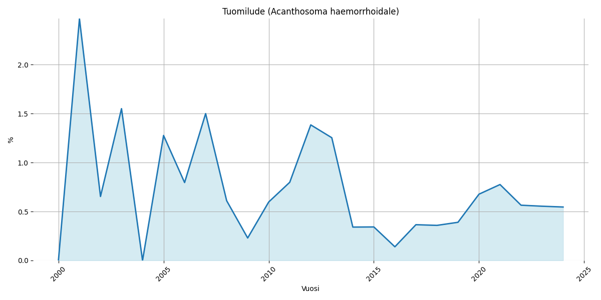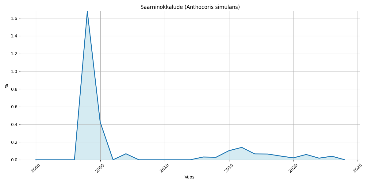 0514 | Tuomilude | Acanthosoma haemorrhoidale | -0.025 | -0.078 | -0.013 | 2.097 |  |