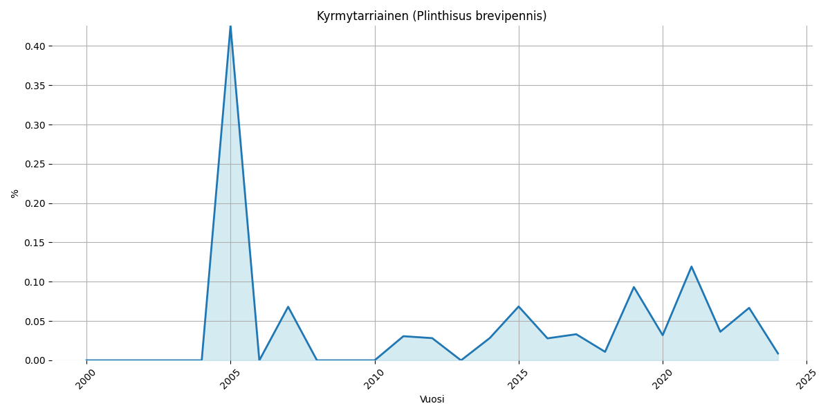0469 | Kyrmytarriainen | Plinthisus brevipennis | 0.0 | 0.897 | 0.002 | 5.659 |  |