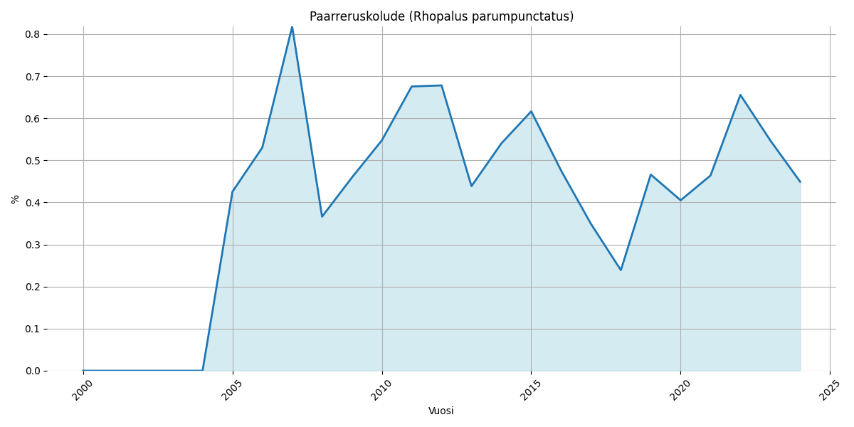0492 | Paarreruskolude | Rhopalus parumpunctatus | 0.017 | 0.361 | 0.014 | 1.418 |  |