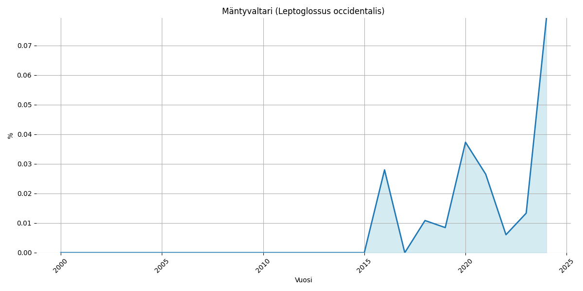 0507 | Mäntyvaltari | Leptoglossus occidentalis | 0.001 | 1.763 | 0.0 | 4.839 |  |