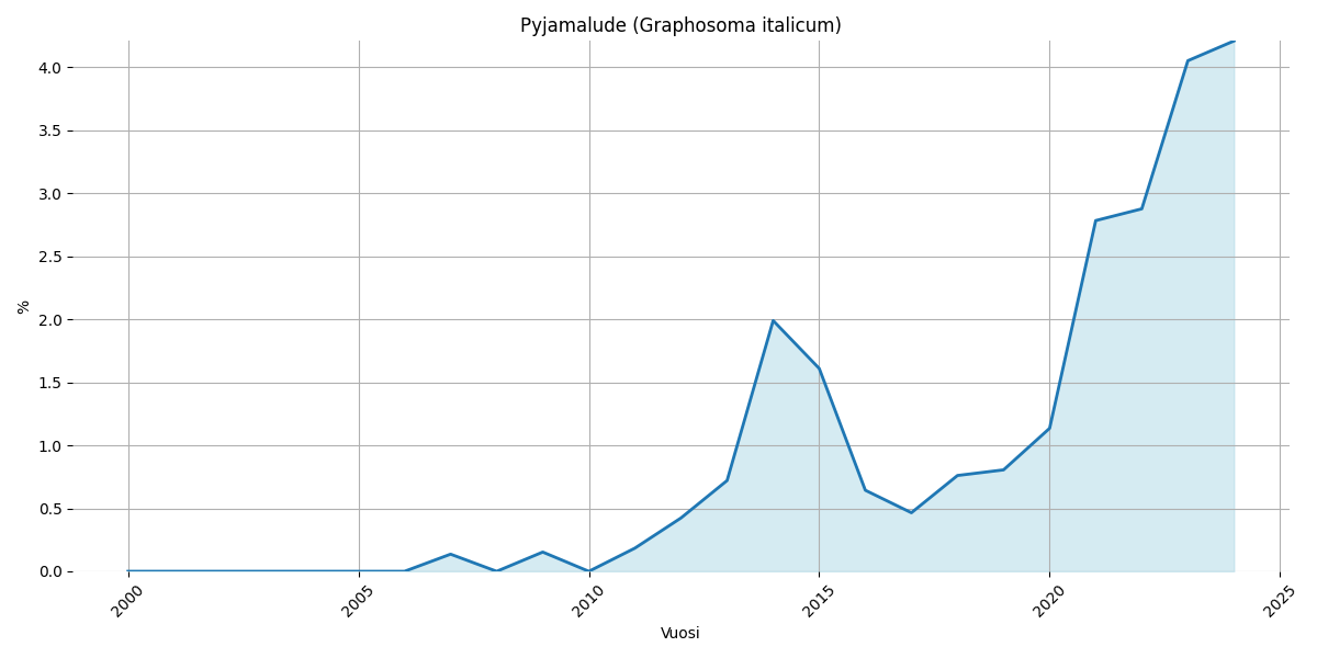 0555 | Pyjamalude | Graphosoma italicum | 0.139 | 5.666 | 0.081 | 2.381 |  |